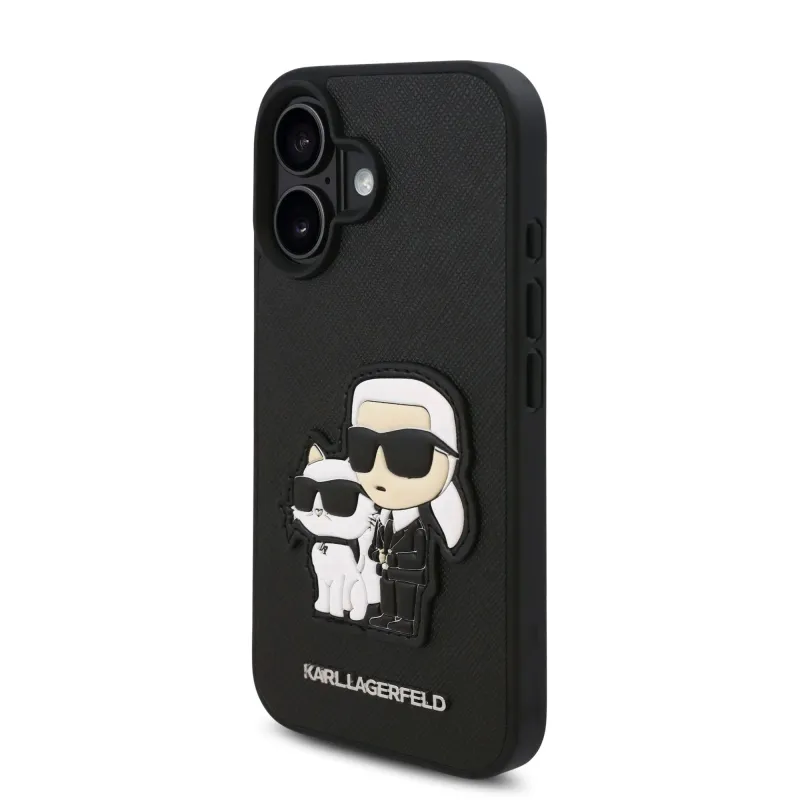 Karl Lagerfeld PU Saffiano Karl és Choupette hátlapi borító iPhone 16-hoz Fekete