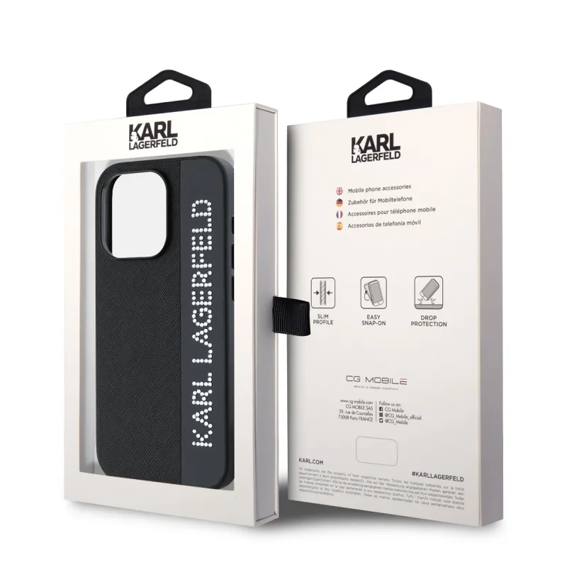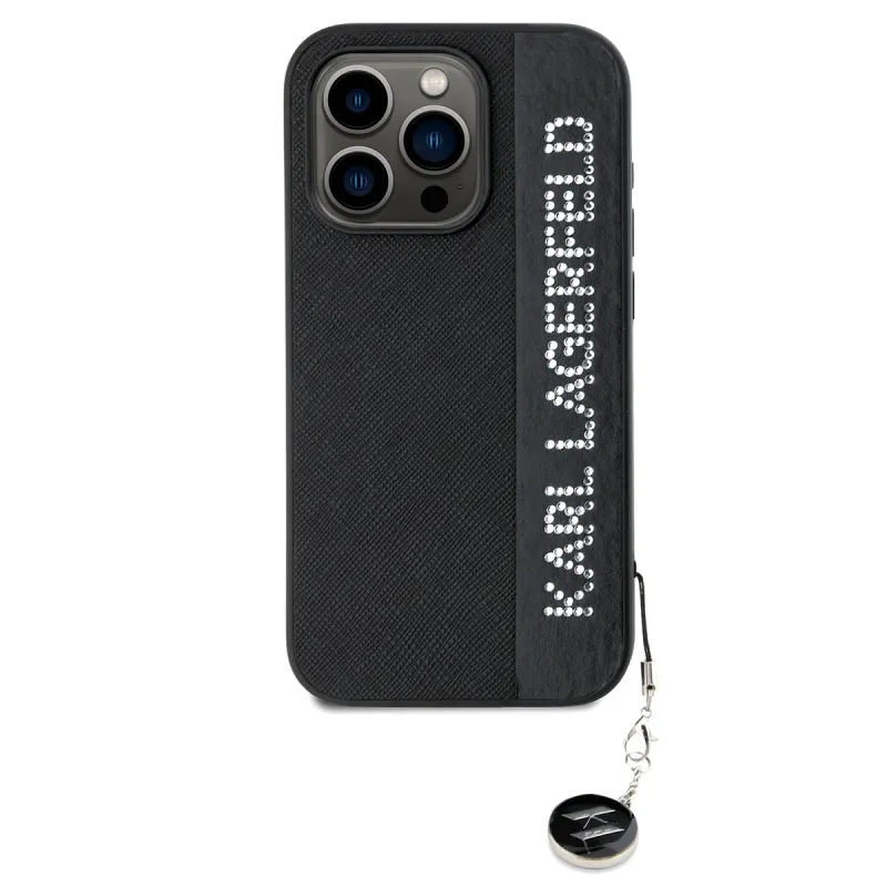 Karl Lagerfeld PU Saffiano strasszos varázslatos hátsó borító iPhone 15 Pro Fekete