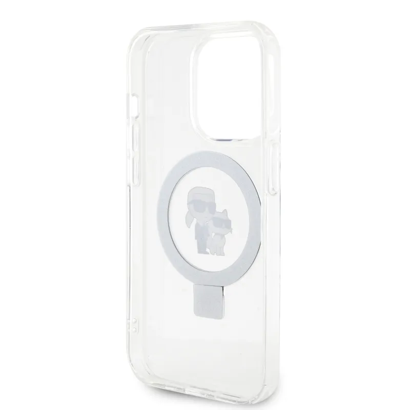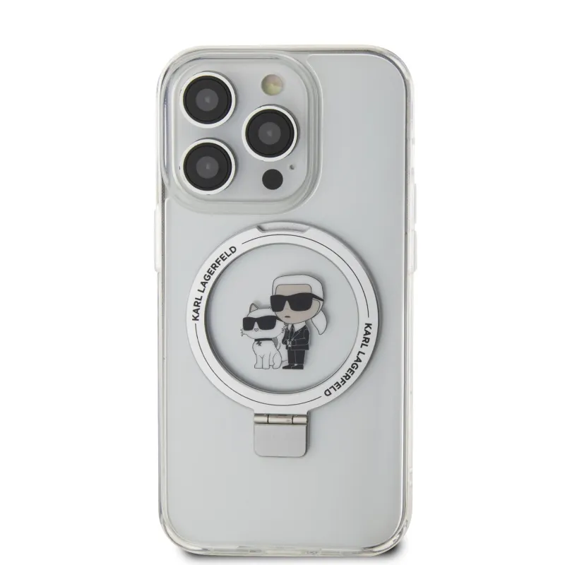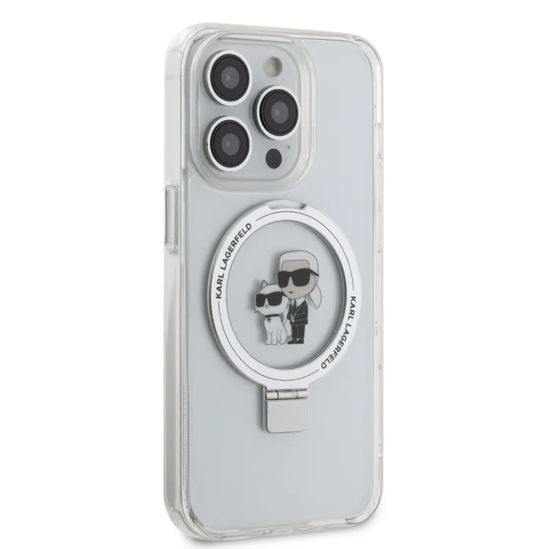 Karl Lagerfeld Ringstand Karl és Choupette MagSafe hátlapi borító iPhone 15 Pro fehér színhez