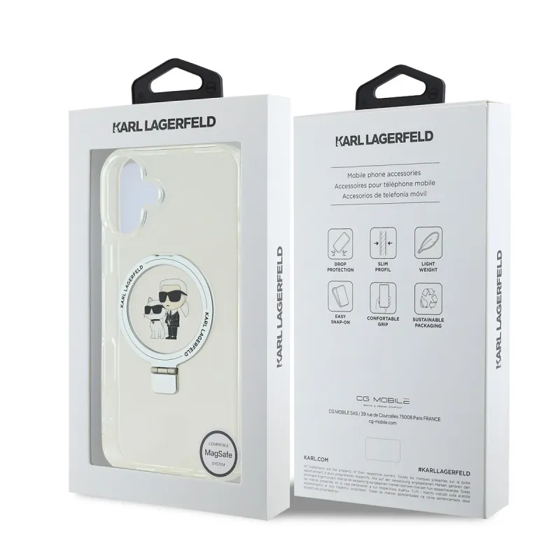 Karl Lagerfeld Ringstand Karl és Choupette MagSafe hátlapi borító iPhone 16 Plus készülékhez Fehér