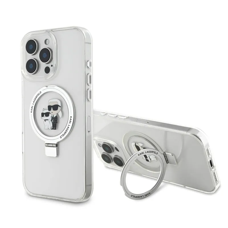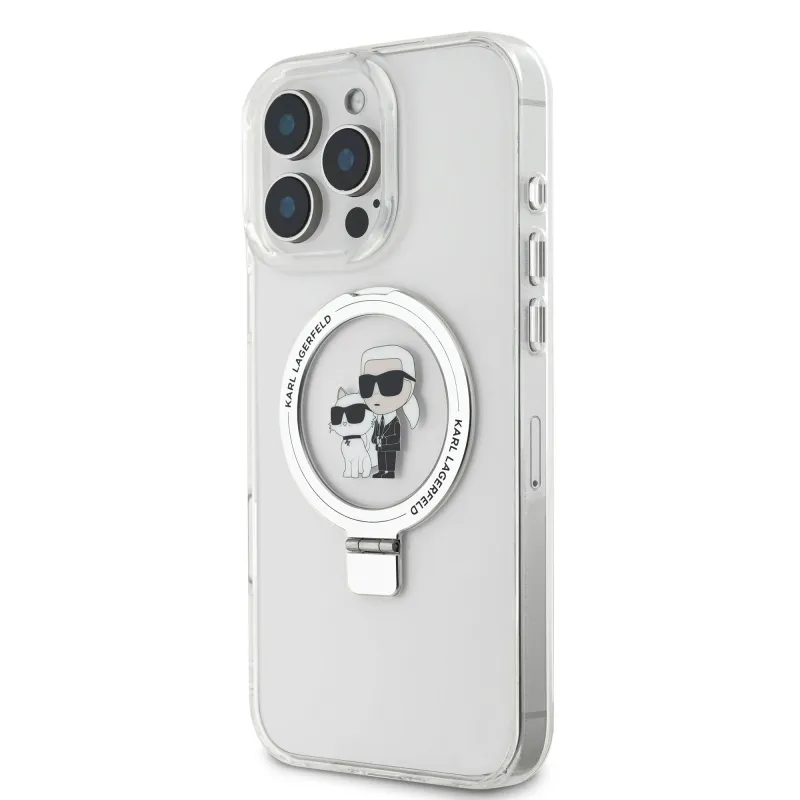 Karl Lagerfeld Ringstand Karl és Choupette MagSafe hátlapi borító iPhone 16 Pro Max készülékhez Fehér