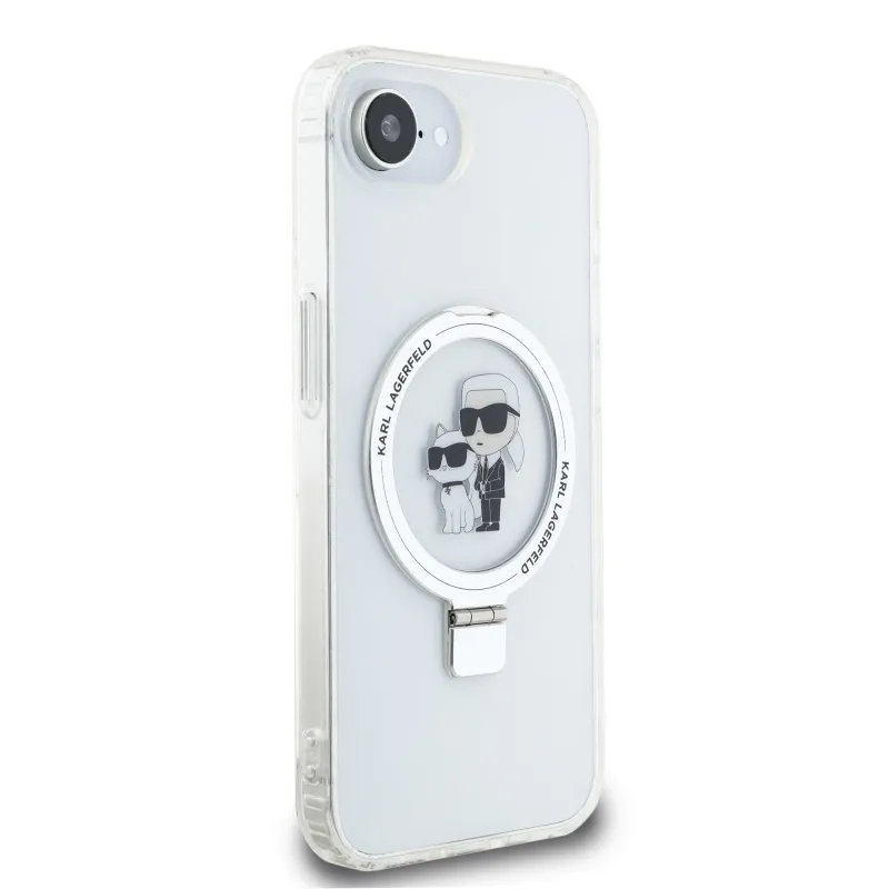 Karl Lagerfeld Ringstand Karl és Choupette MagSafe hátlapi borító iPhone 16e-hez Fehér