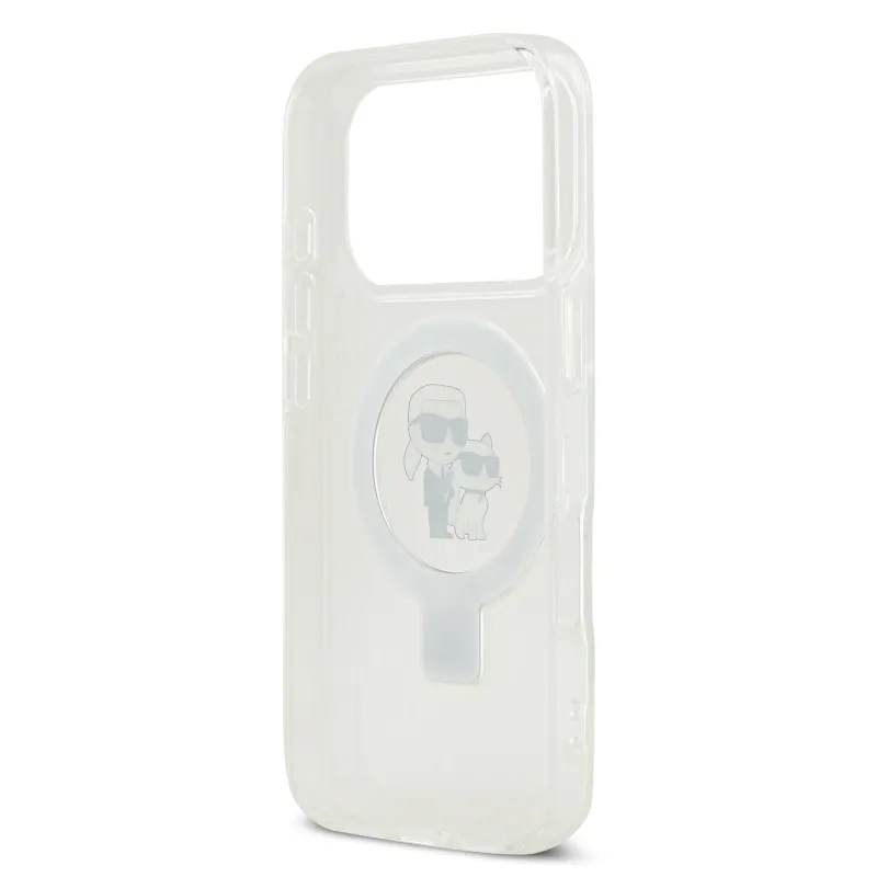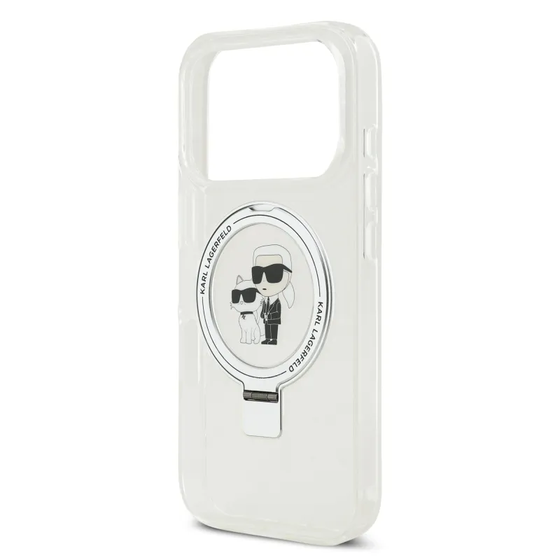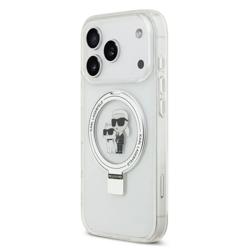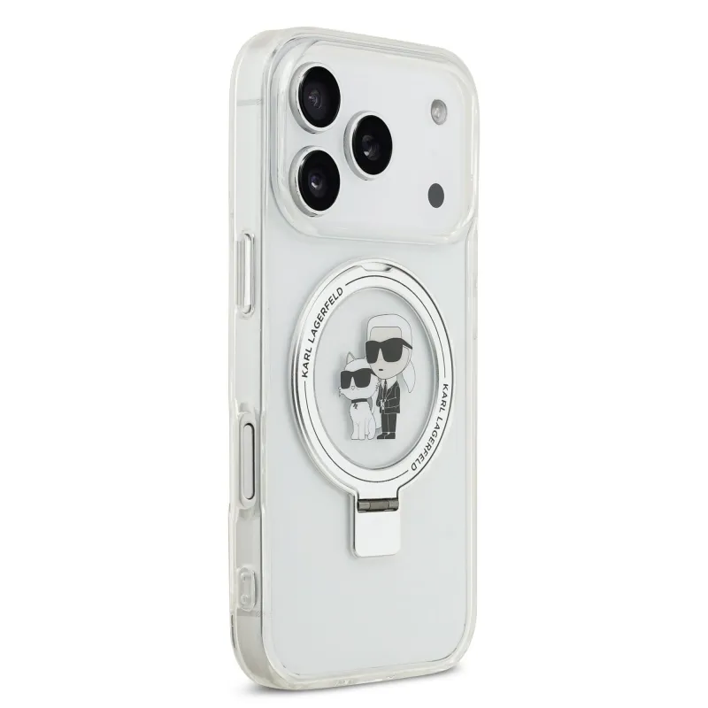 Karl Lagerfeld Ringstand Karl és Choupette MagSafe hátlapi borító iPhone 17 Pro fehér színhez