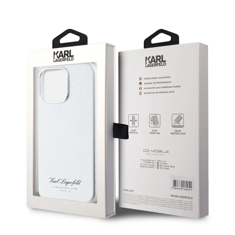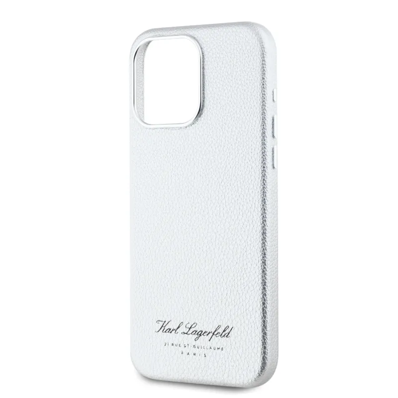 Karl Lagerfeld szemcsés PU Hotel RSG hátlap iPhone 15 Pro Max-hoz Szürke