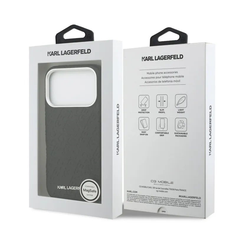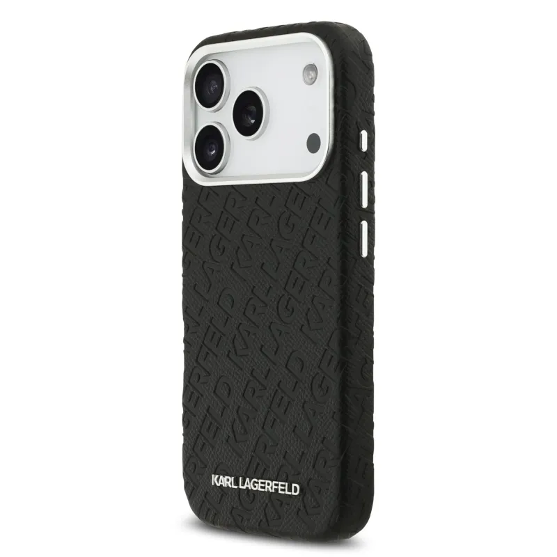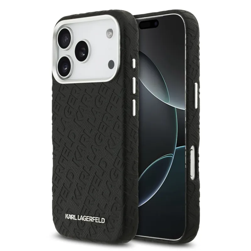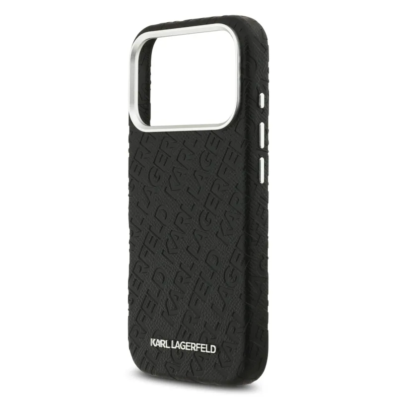 Karl Lagerfeld szemcsés PU ismétlődő logó MagSafe hátlap iPhone 17 Pro Fekete