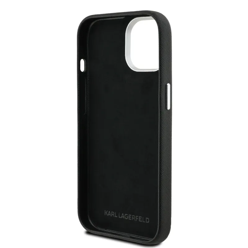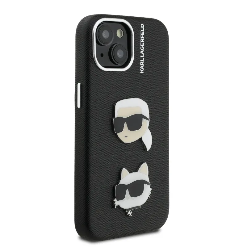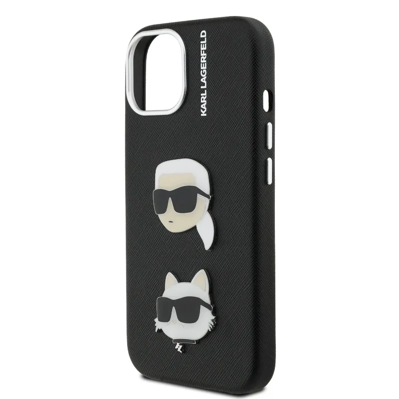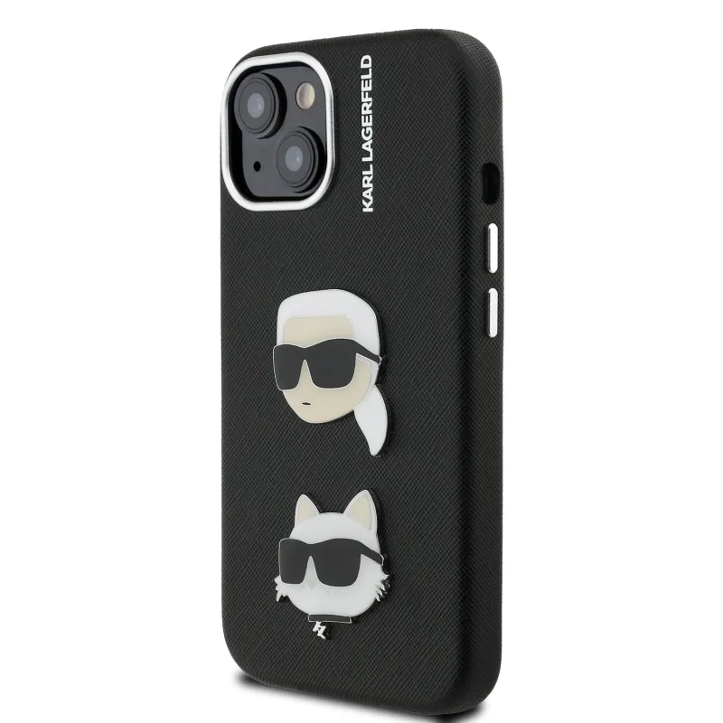 Karl Lagerfeld szemcsés PU K&CH Heads hátlap iPhone 15-hez Fekete