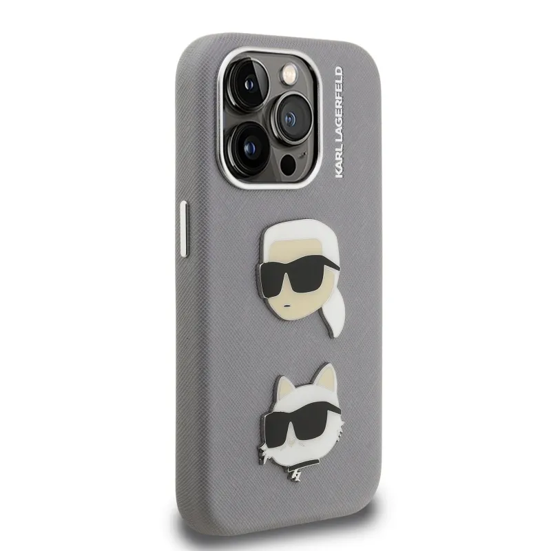 Karl Lagerfeld szemcsés PU K&CH Heads hátlap iPhone 15 Pro Max szürke