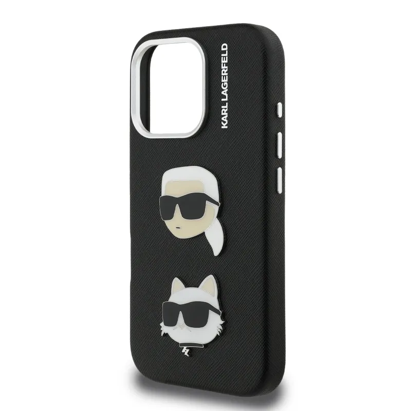 Karl Lagerfeld szemcsés PU K&CH Heads hátlap iPhone 16 Pro Fekete