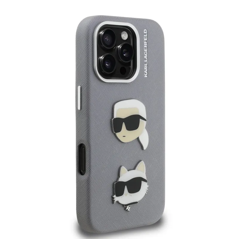 Karl Lagerfeld szemcsés PU K&CH Heads hátlap iPhone 16 Pro szürke számára