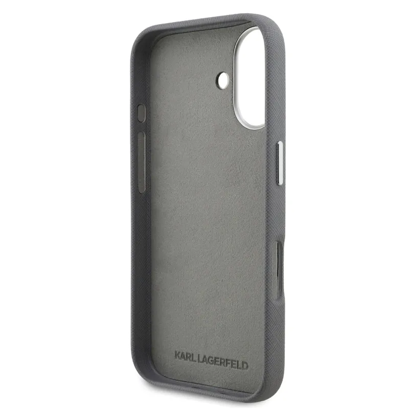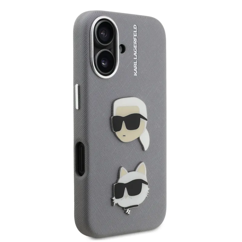 Karl Lagerfeld szemcsés PU K&CH Heads hátlap iPhone 16 szürke készülékhez