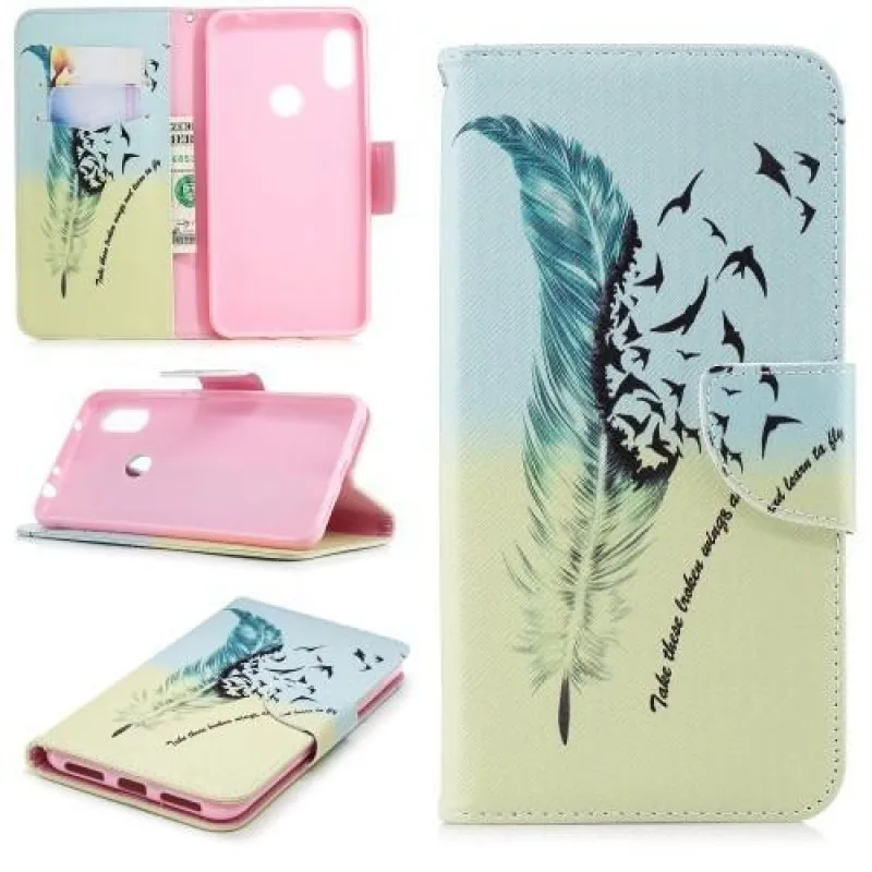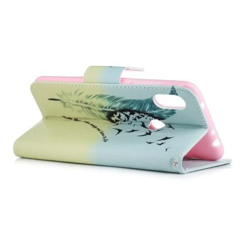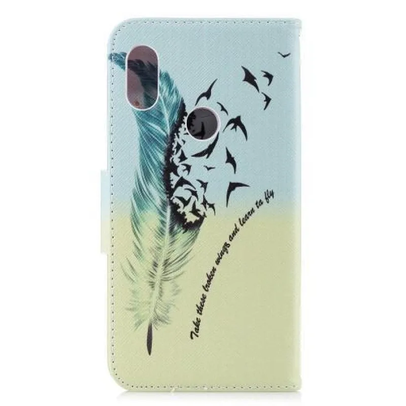Stílusos műbőr védőborítás Xiaomi Redmi Note 6 Pro készülékhez toll motívummal