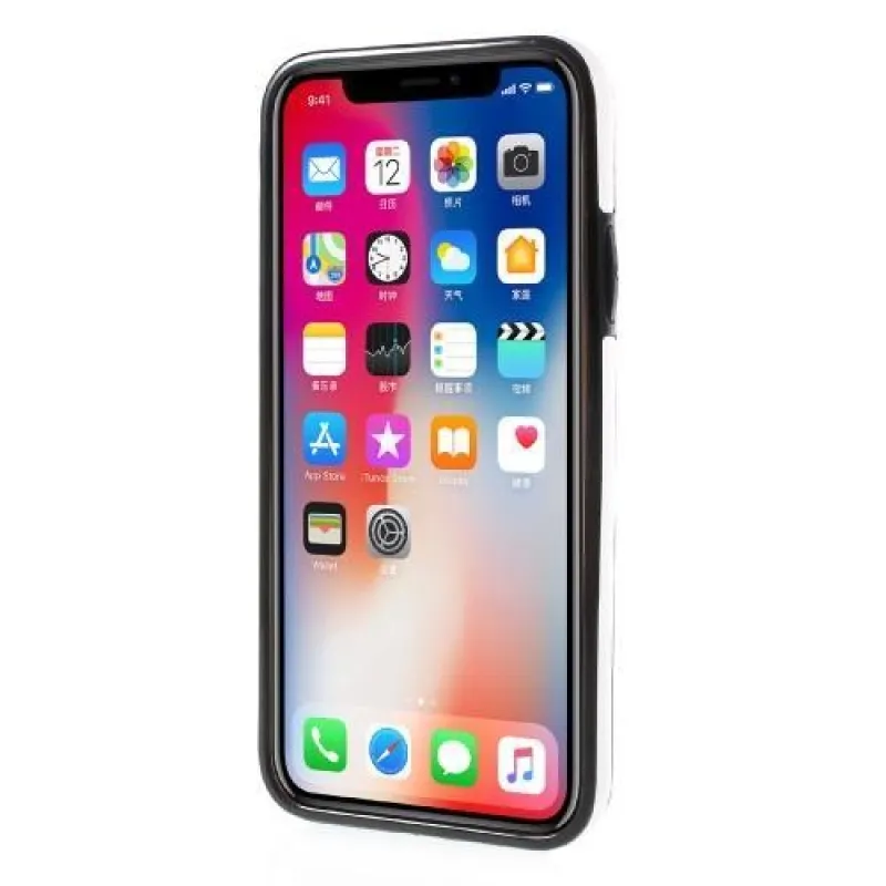 Fehér műbőrrel bevont fekete zseléből készült védőtok, rekeszekkel iPhone X készülékhez