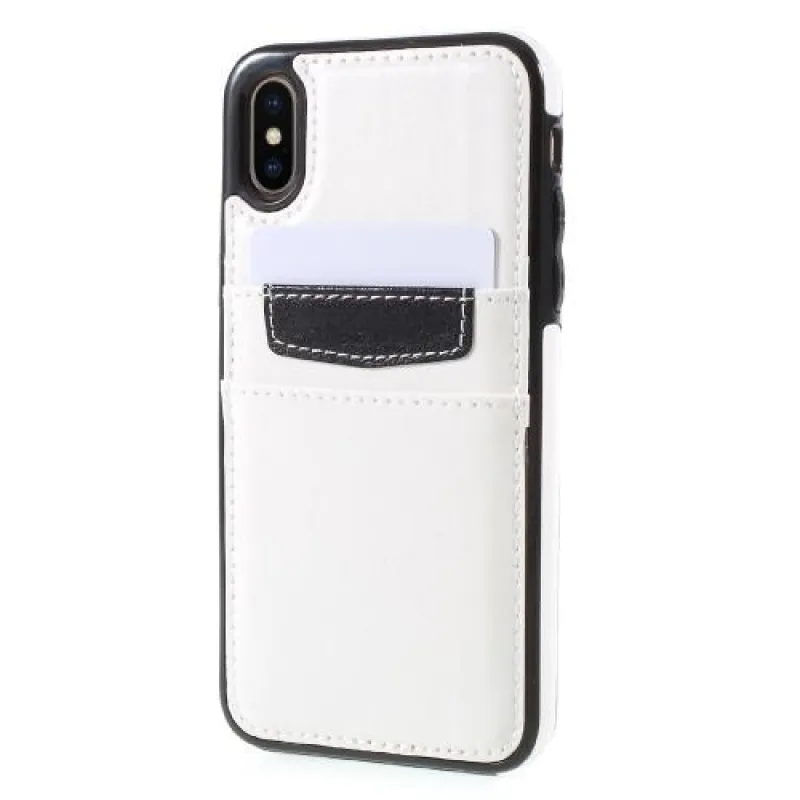 Kártya zselés tok PU bőr hátlappal és rekeszekkel iPhone X készülékhez - fehér