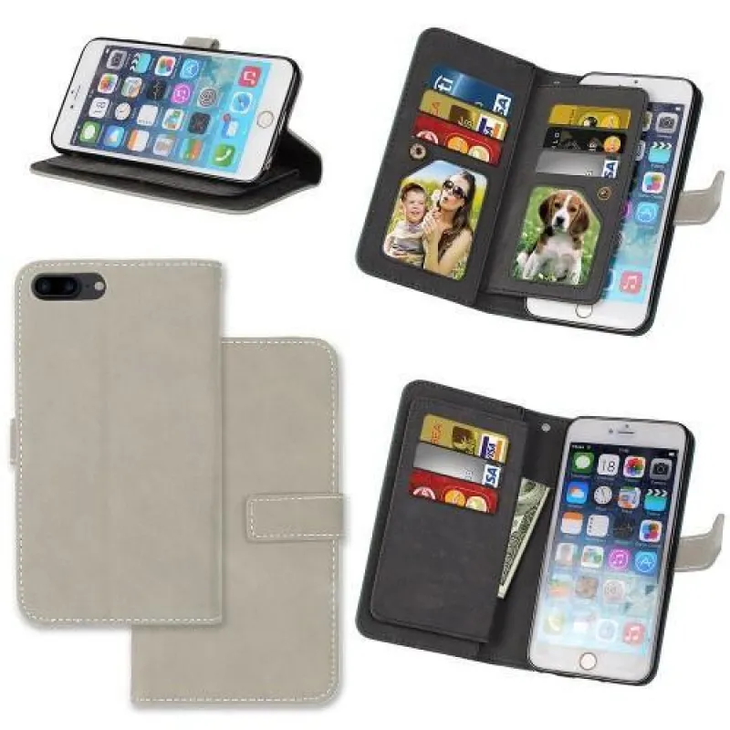 Kártyák PU bőr tok kilenc rekesszel iPhone 7 Plus és 8 Plus készülékhez - szürke