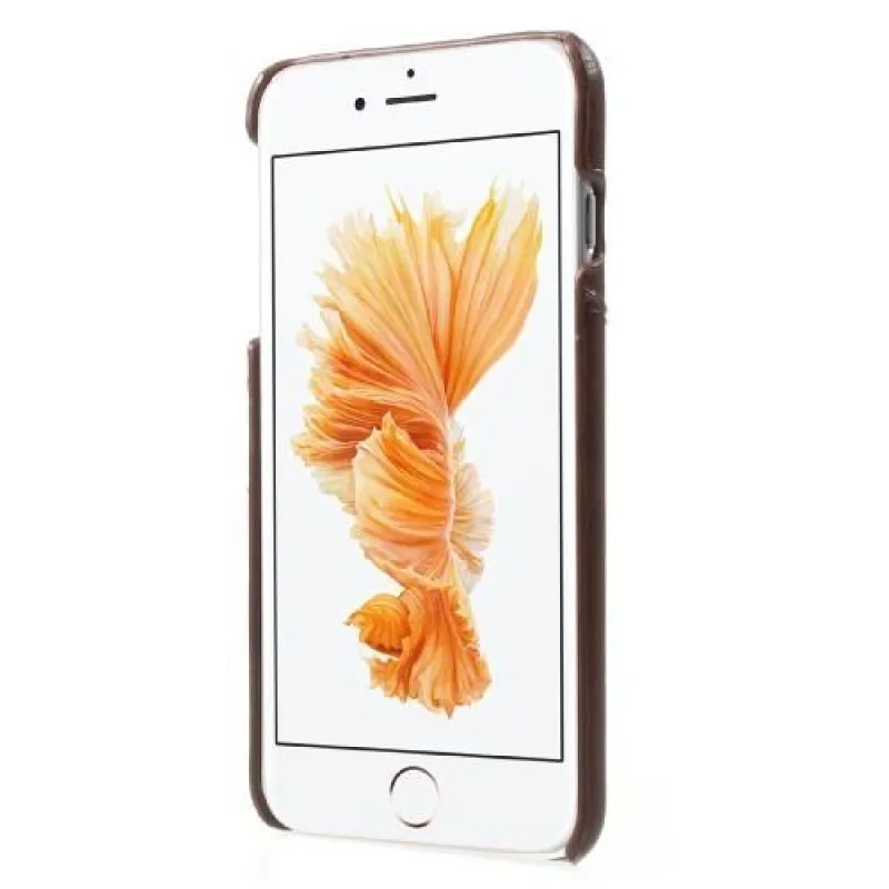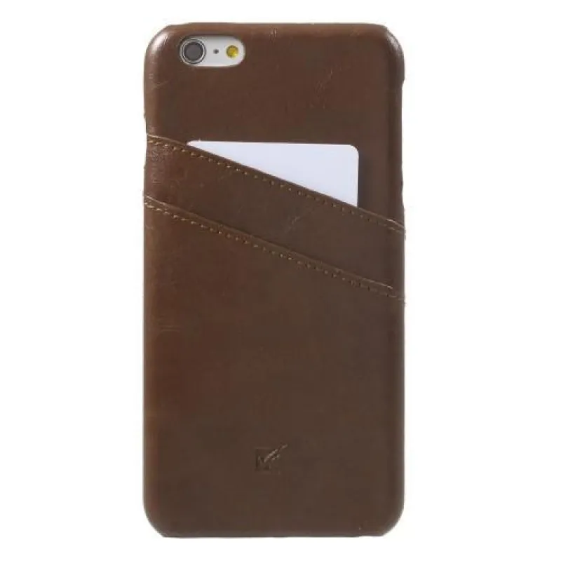 Kártyás műanyag tok PU bőr hátlappal és rekesszel iPhone 6s Plus és 6 Plus készülékhez - barna színben