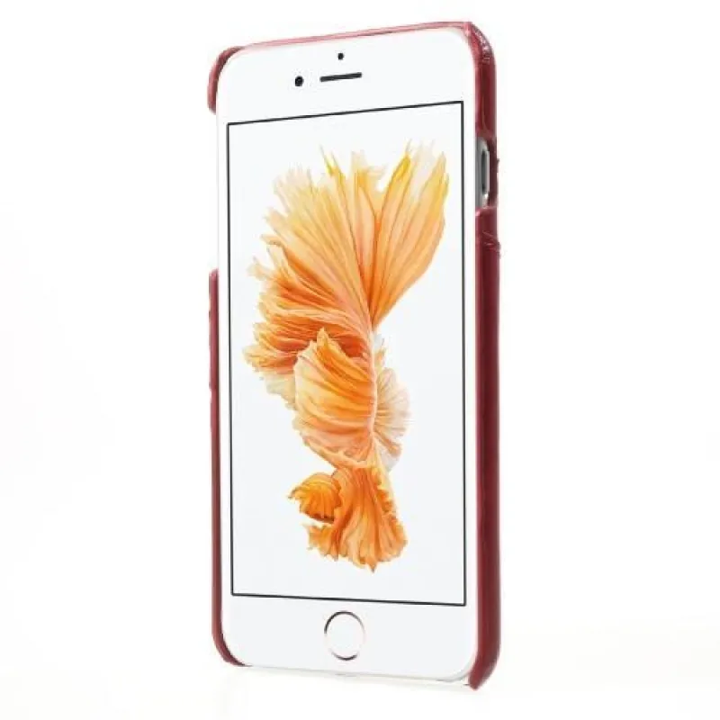 Kártyás műanyag tok PU bőr hátlappal és rekesszel iPhone 6s Plus és 6 Plus készülékhez - piros színű