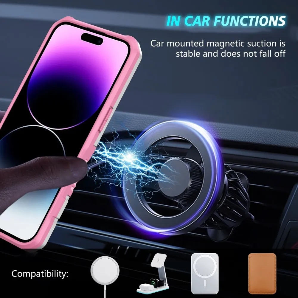 Katonai tartós védőburkolat MagSafe-vel iPhone 14 Pro Max készülékhez - rózsaszín/fehér