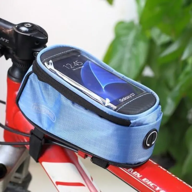Kerékpáros táska mobiltelefonok tárolására 138,3 x 67,1 x 7,1 mm méretű mobiltelefonok számára - kék színben