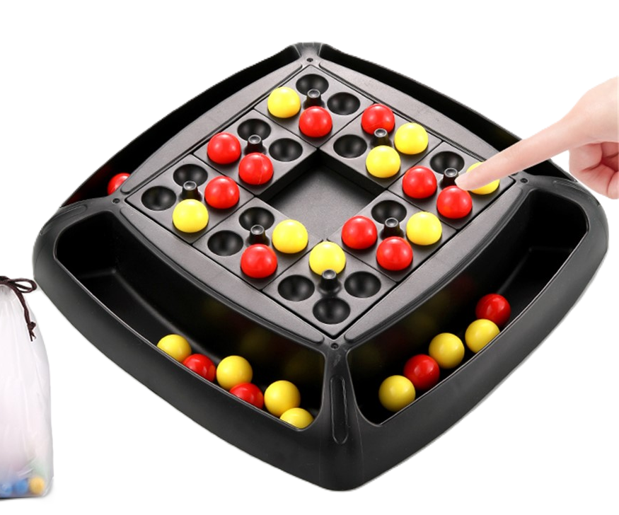 A jól elrendezett nyílásokkal ellátott játéktábla többféle kirakási lehetőséget és kétjátékos versenyjátékot is kínál. A stratégiai játék gyerekeknek nemcsak a logikát, hanem a türelmet és a kéz-szem koordinációt is fejleszti. Az oldalsó praktikus rekeszek a golyók tárolására szolgálnak játék közben.