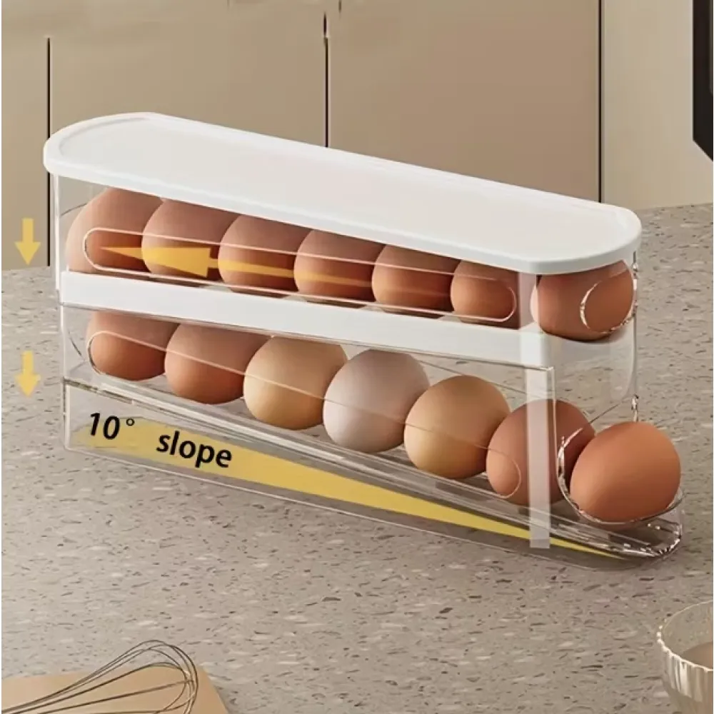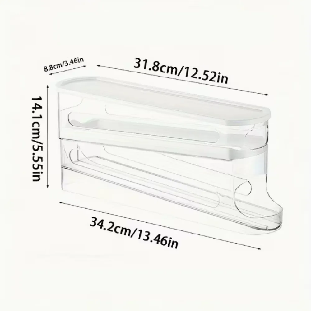 A praktikus kétszintes tojástartó adagoló segít rendezetten tartani a hűtőszekrényt, miközben megóvja a tojásokat a sérüléstől. Az átgondolt kialakításnak köszönhetően a tojások kivétel után automatikusan előregurulnak, így mindig könnyen elérhetők. A beépített adagoló rendszer a tojások egyszerű és biztonságos kiadásához csökkenti a leesés vagy törés kockázatát. A tartós műanyagból készült kompakt kivitel helytakarékos megoldást kínál a hűtőben.