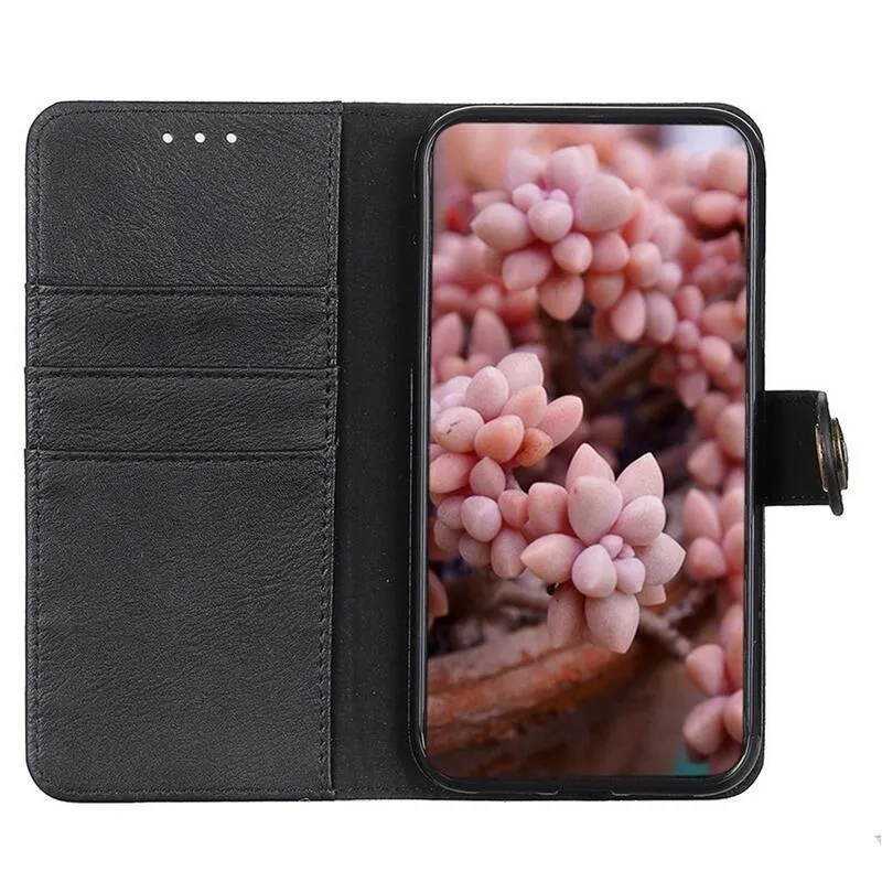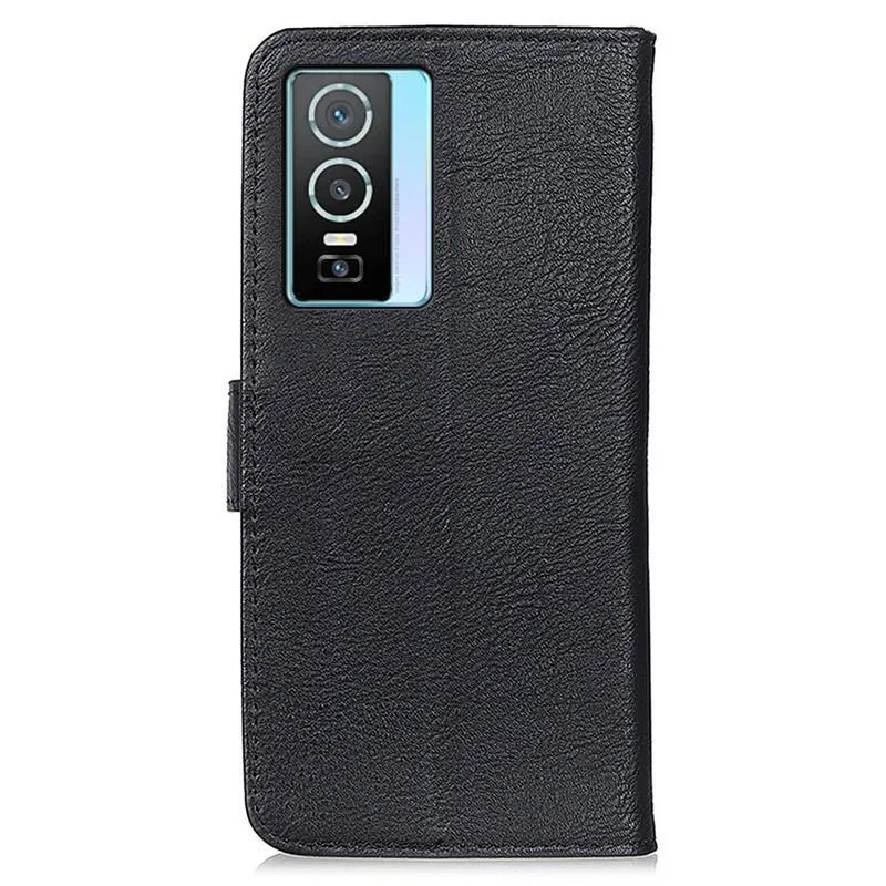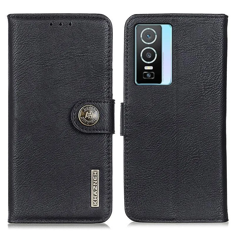KHAZ PU bőr pénztárca tok a Vivo Y76 5G/Y76s számára - fekete