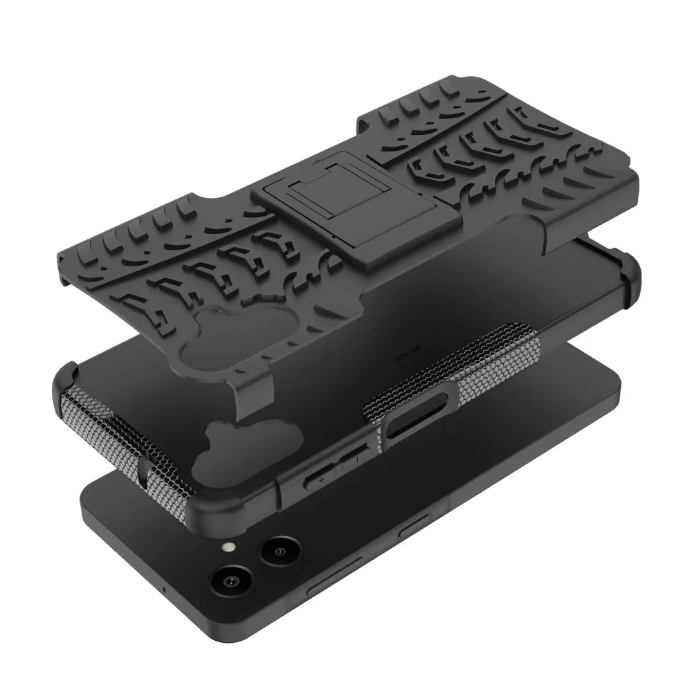 A Kick Hybrid Rugged tok nagyfokú biztonságot nyújt Samsung Galaxy A06 4G készülékednek a rugalmas, ütésálló TPU és a kemény polikarbonát kombinációjának, valamint a megerősített sarkoknak köszönhetően. A kiemelt szélek a kijelző és a lencsék számára is jobb védelmet nyújtanak. A tok hátulján egy kihajtható állvány található.