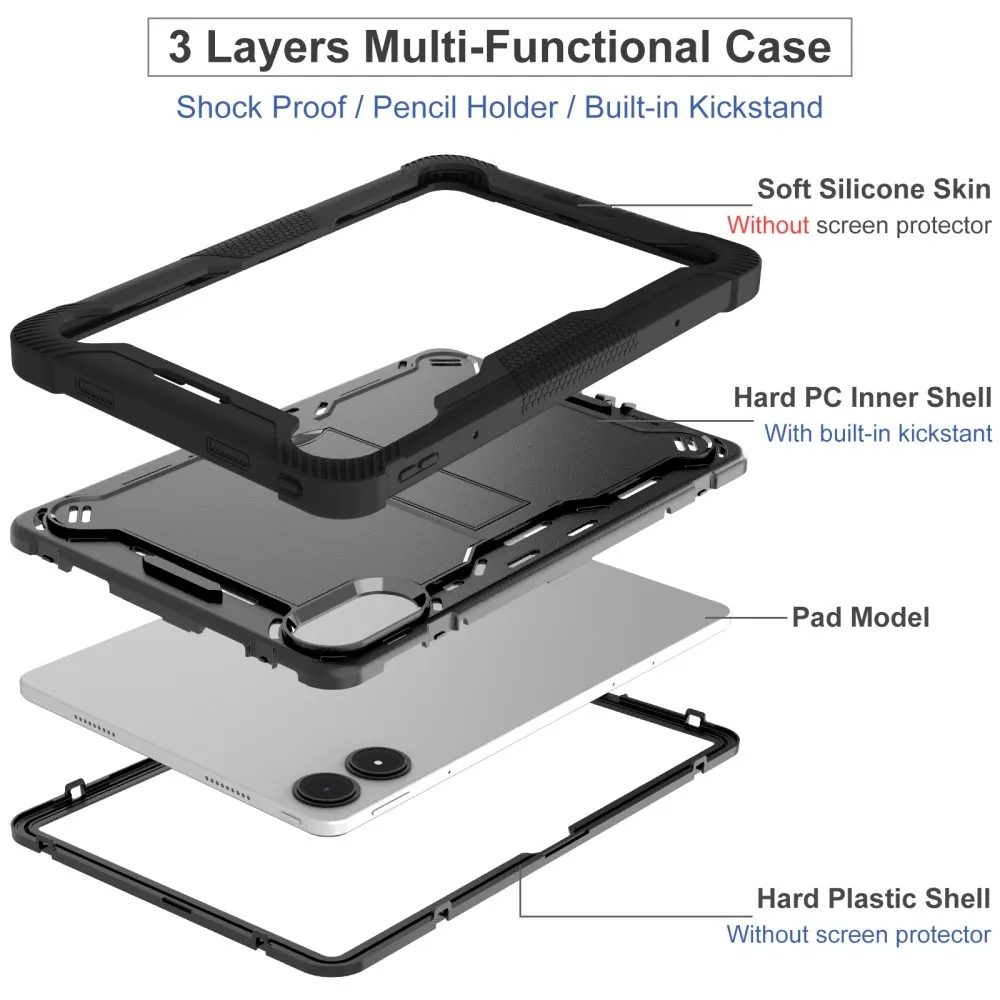 Tartós hibrid borítás Kick a Xiaomi Redmi Pad Pro 4G/5G-re - fekete