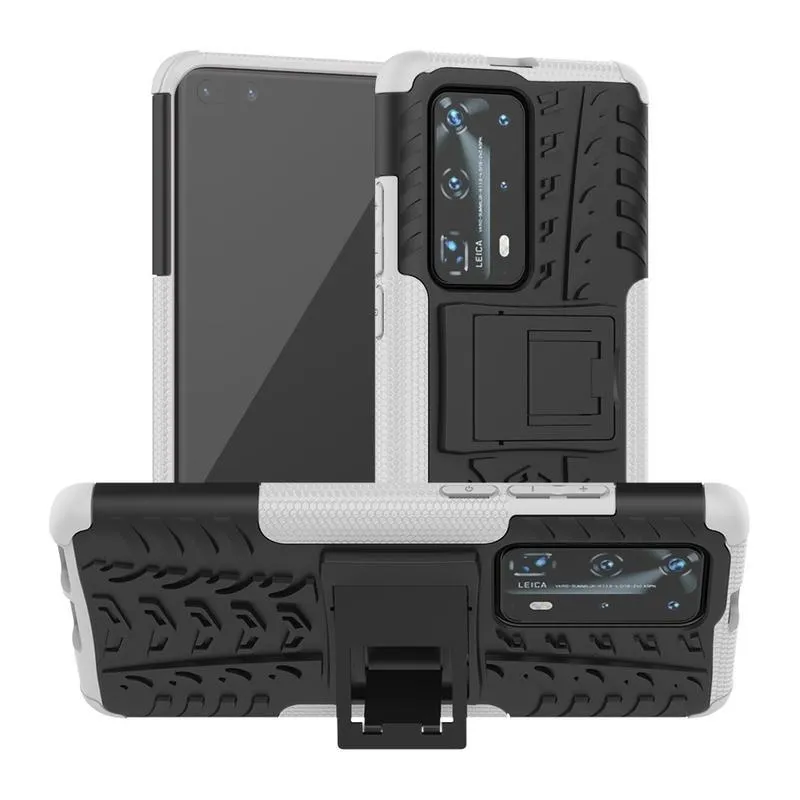 Kicstand tartós hibrid borítás Huawei P40 Pro készülékhez - fehér