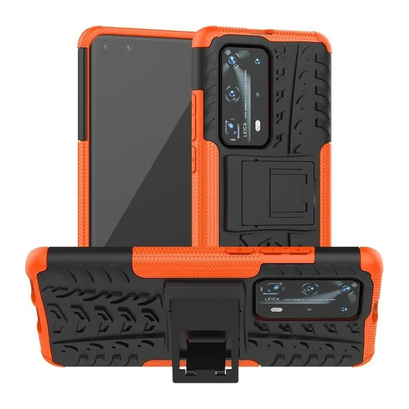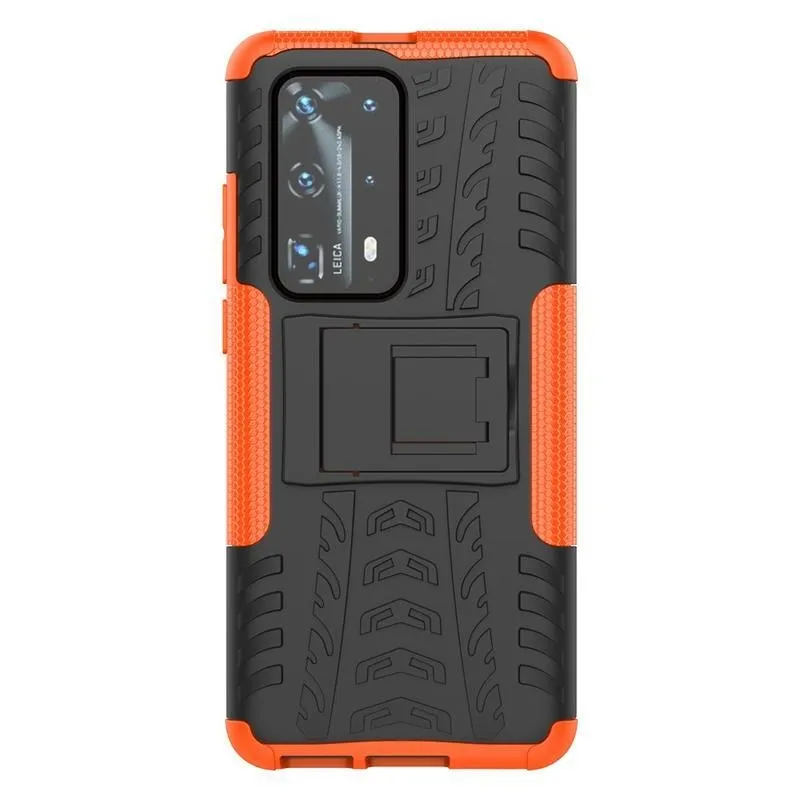 Kicstand tartós hibrid borítás Huawei P40 Pro készülékhez - narancssárga