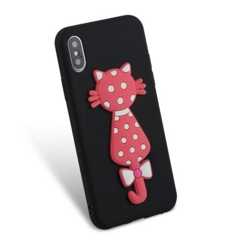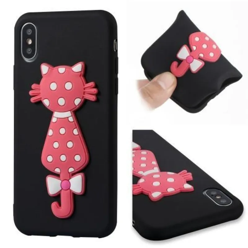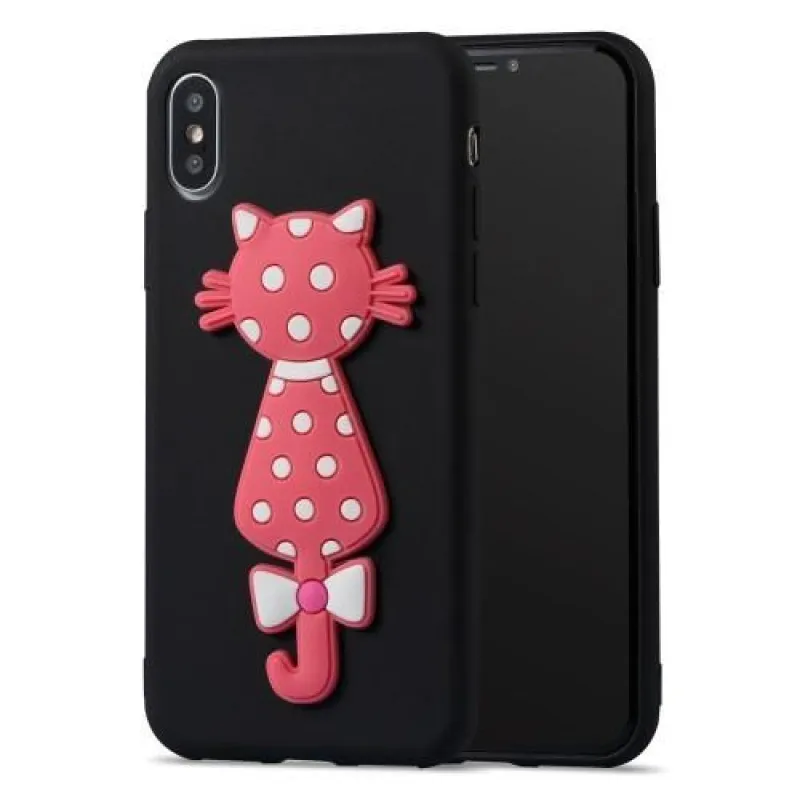 Fekete zselés borítás 3D-s rózsaszín macskával iPhone X készülékhez