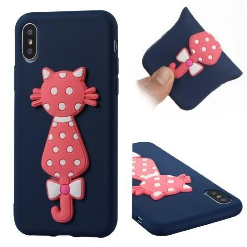 Sötétkék zselés borítás 3D-s rózsaszín macskával iPhone X készülékhez