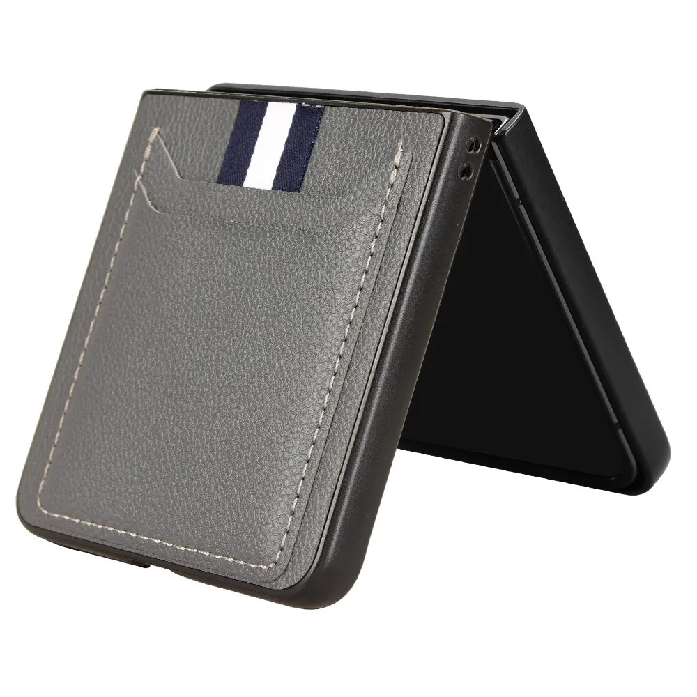 Szürke műanyag tok Combi műbőrrel a mobiltelefonon Samsung Galaxy Z Flip7 5G 5G