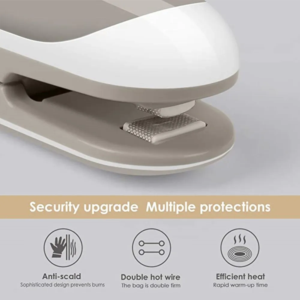 A hegesztő ideális chipses, tésztás, fűszeres vagy más élelmiszeres zacskók lezárására. Segít hosszabb ideig frissen tartani az ételeket és megvédi őket a kiszáradástól vagy nedvességtől. Mindennapi otthoni használatra alkalmas.
