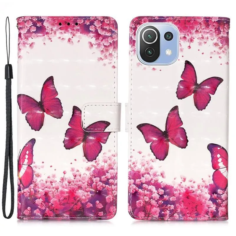 Könnyű pénztárca tok Xiaomi Mi 11 Lite 5G/4G/11 Lite 5G NE - rózsaszín pillangókhoz