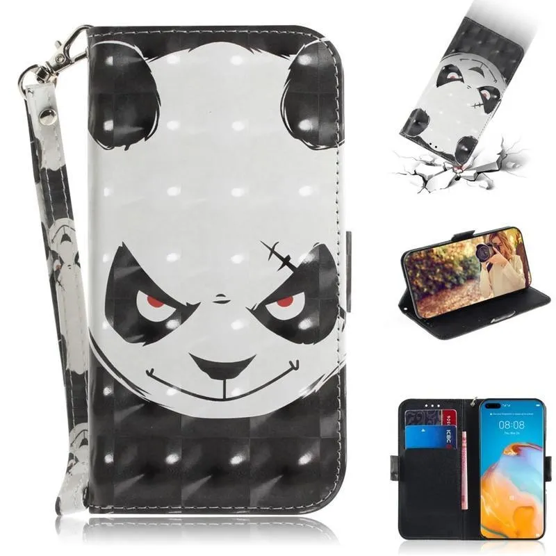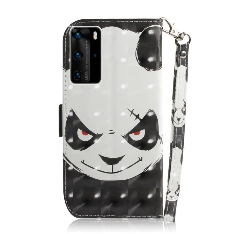 Könnyű PU bőr pénztárca tok a Huawei P40 Pro-hoz - angry panda