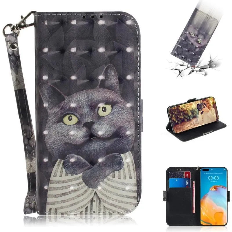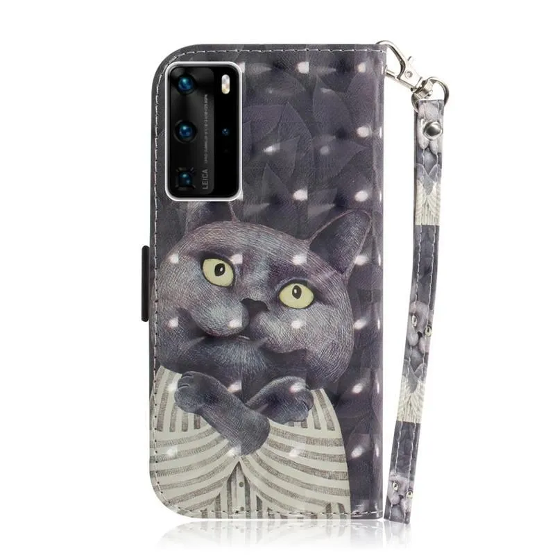 Könnyű PU bőr pénztárca tok a Huawei P40 Pro-hoz - macska