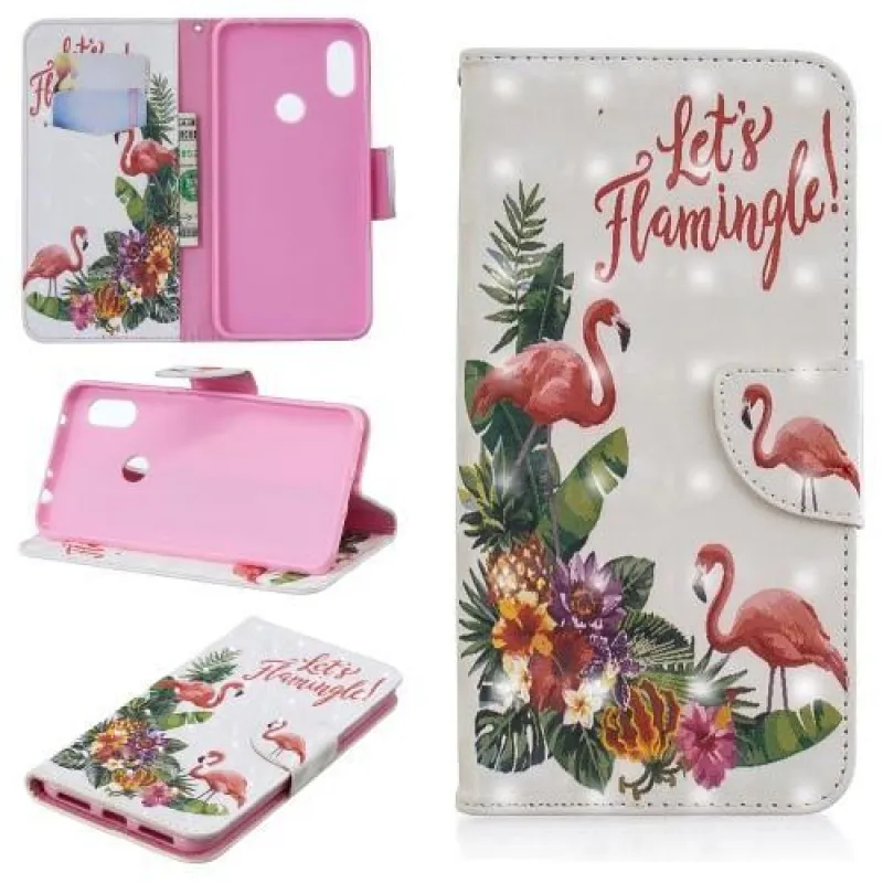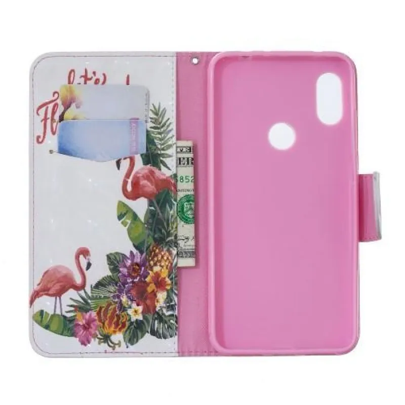 Könnyű PU bőr pénztárca tok a Xiaomi Redmi Note 6 Pro-hoz - flamingó