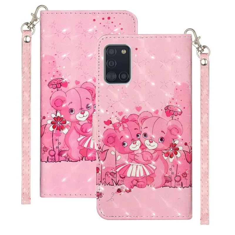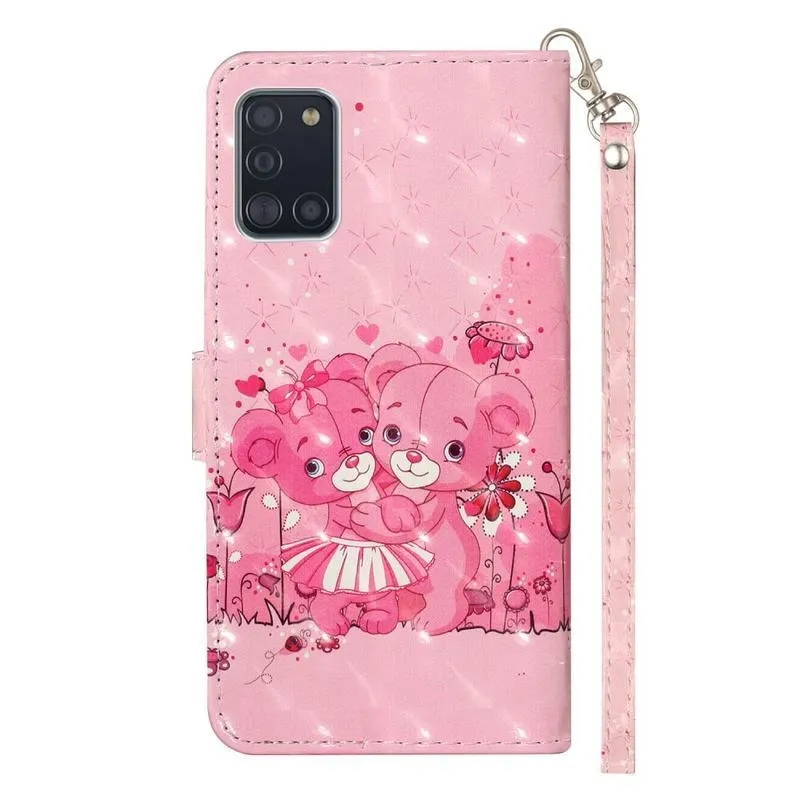 Könnyű PU bőr pénztárca tok mobiltelefonhoz Samsung Galaxy A31 - szerelmes mackókkal