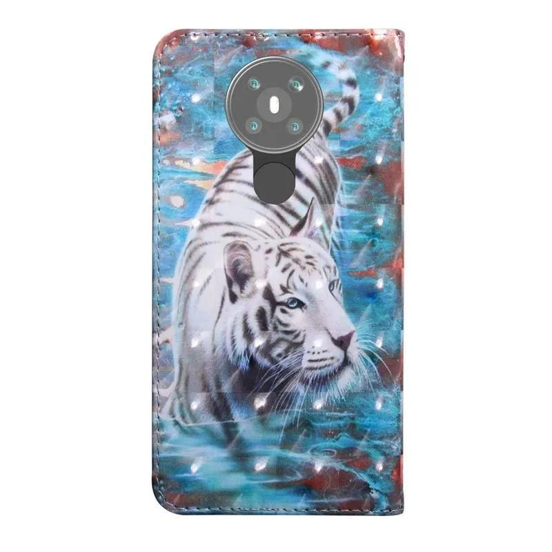 Könnyű PU bőr pénztárca tok Nokia 5.3 készülékhez - fehér tigris