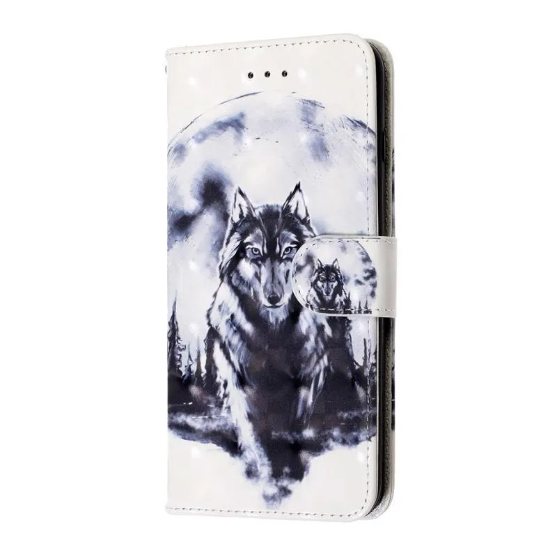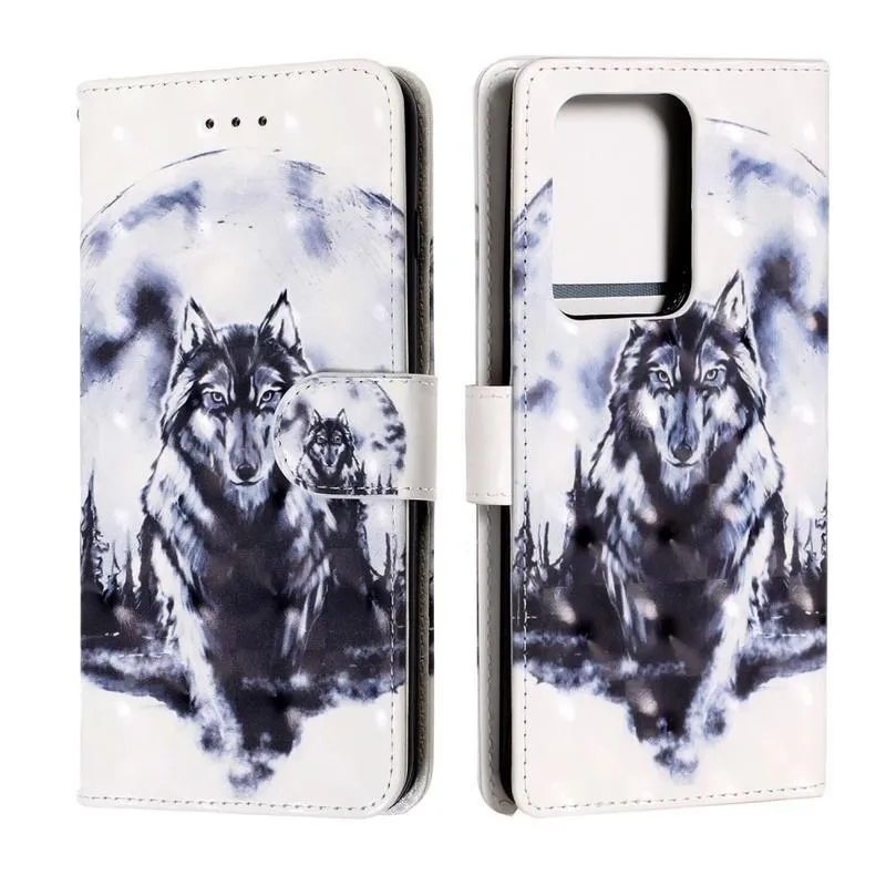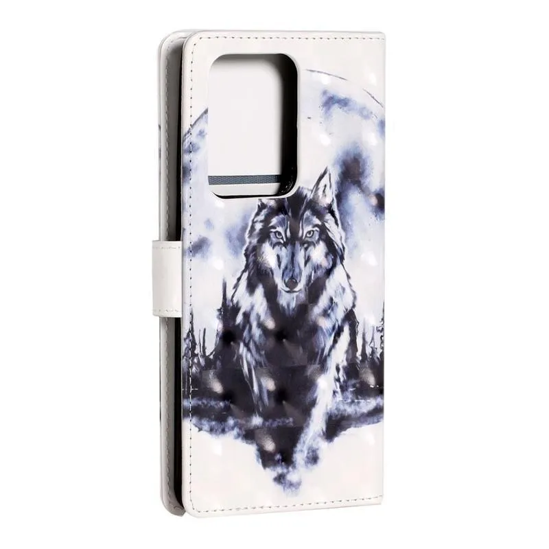 Könnyű PU bőr pénztárca tok Samsung Galaxy S20 Ultra készülékhez - farkas és Hold