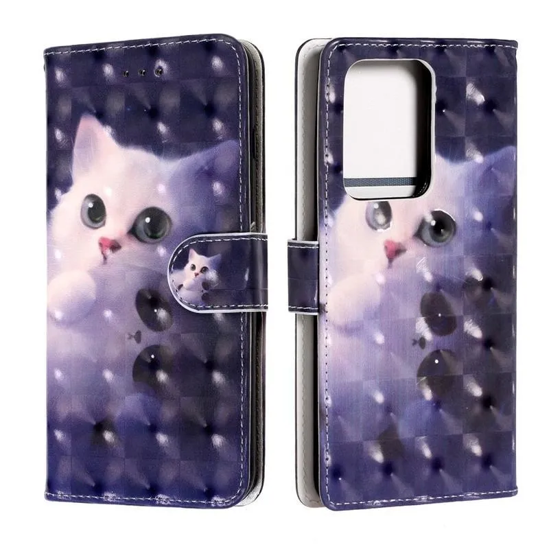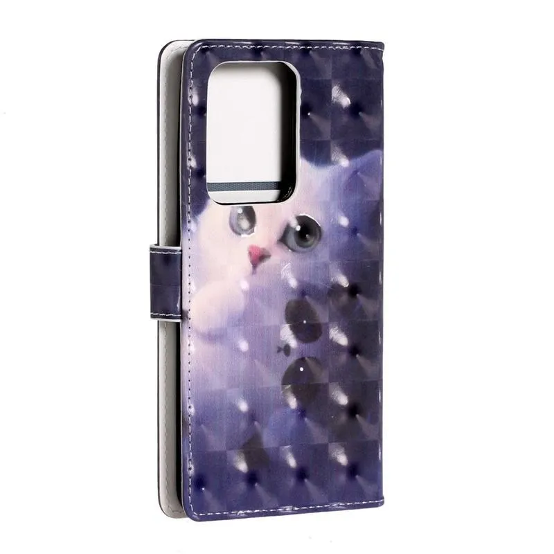Könnyű PU bőr pénztárca tok Samsung Galaxy S20 Ultra készülékhez - fehér macska