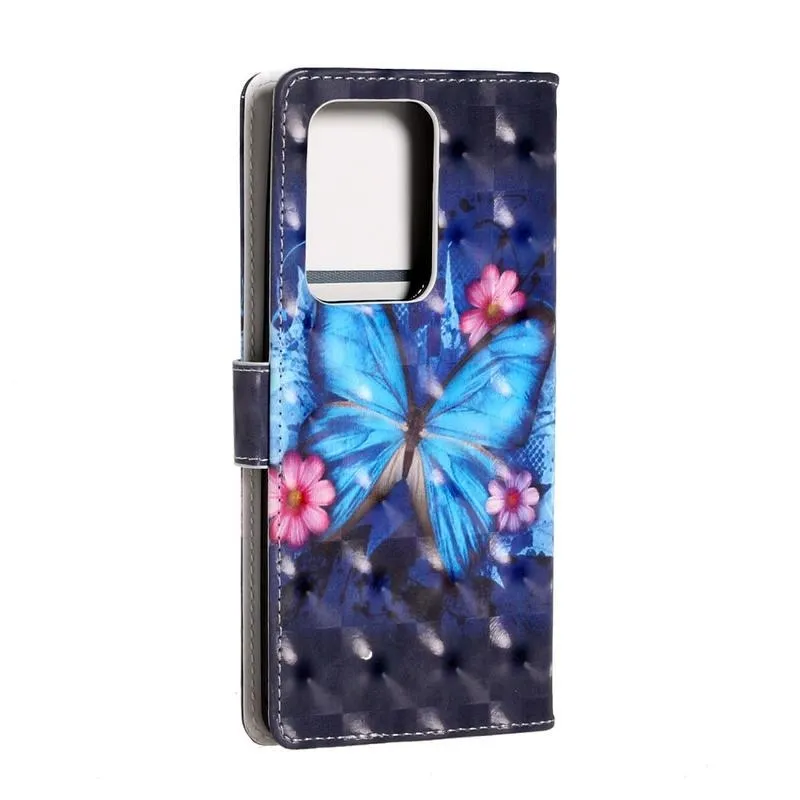 Könnyű PU bőr pénztárca tok Samsung Galaxy S20 Ultra készülékhez - kék pillangó