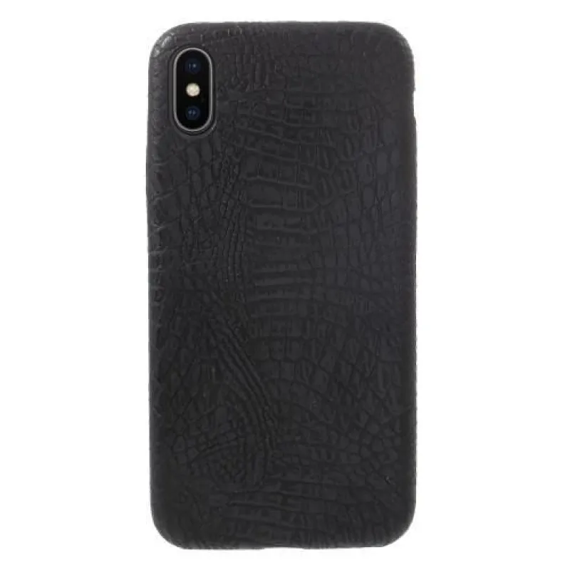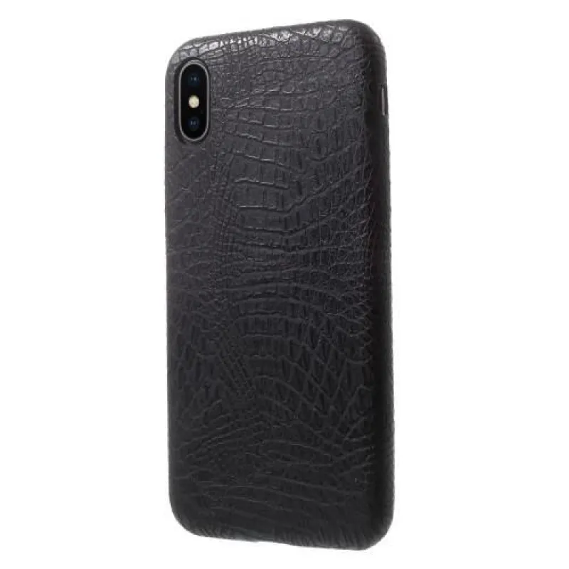 Fekete műbőrrel borított műanyag tok krokodil utánzattal iPhone X készülékhez