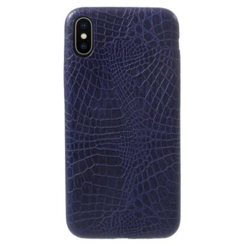 Kék műbőrrel borított műanyag tok krokodil utánzattal iPhone X készülékhez