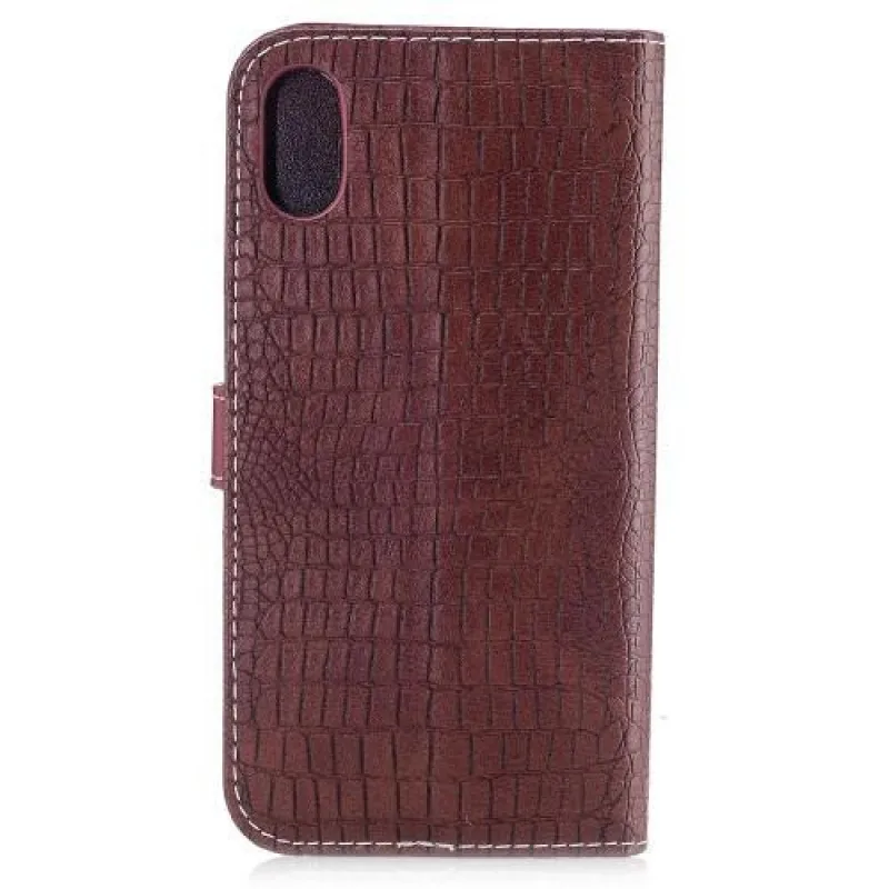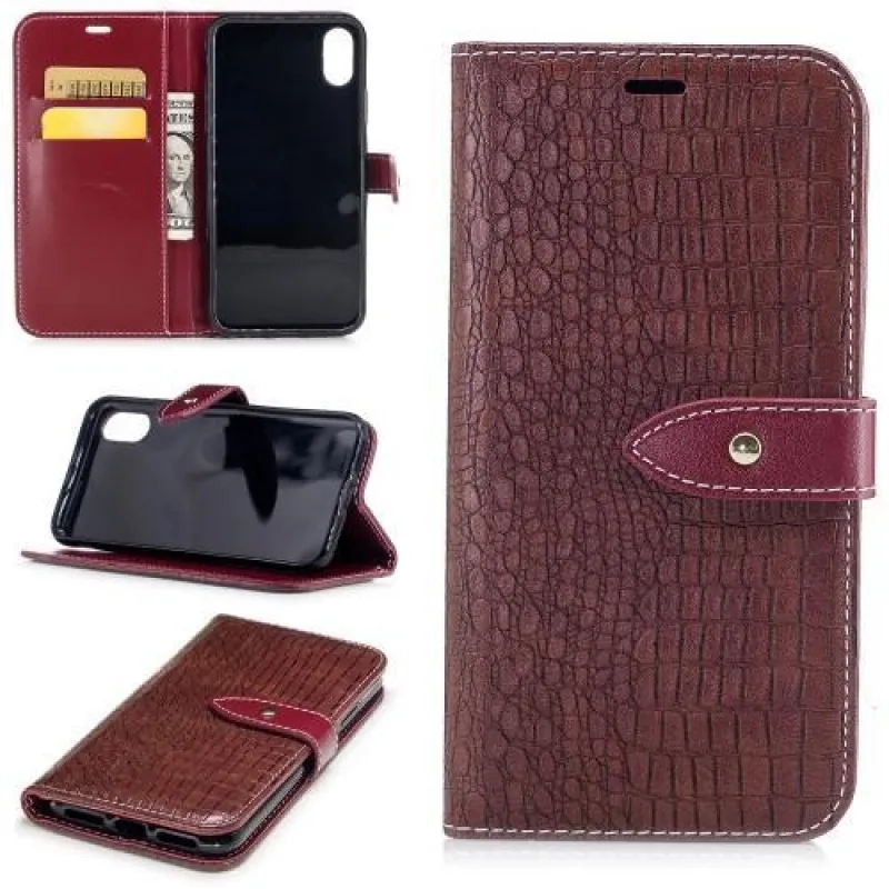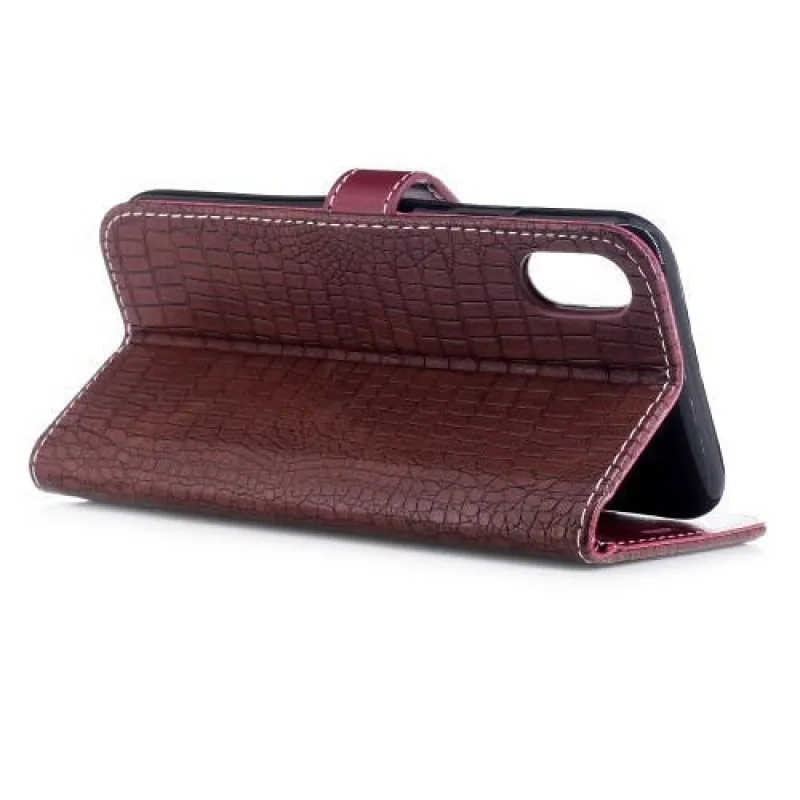 Krokó PU bőr tok iPhone X készülékhez - bordó színben
