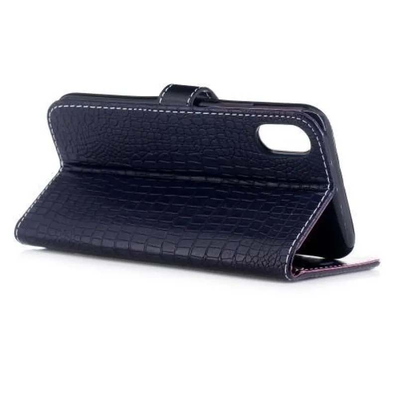 Krokó PU bőr tok iPhone X készülékhez - sötétkék