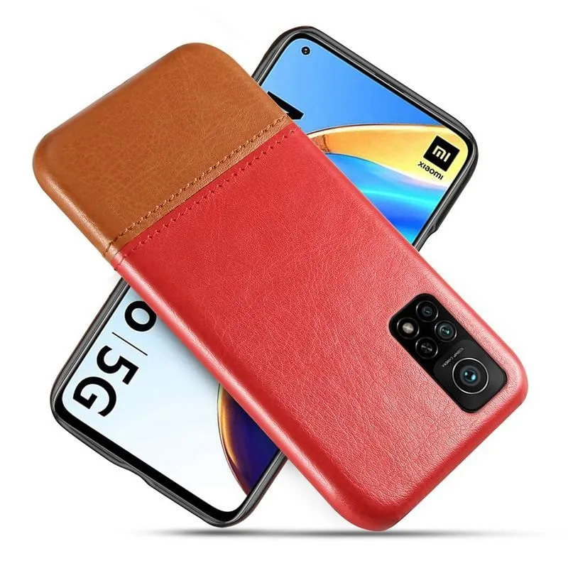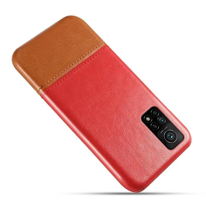 KSQ PU bőrrel borított műanyag borítás a Xiaomi Mi 10T Pro 5G készülékhez - piros/barna