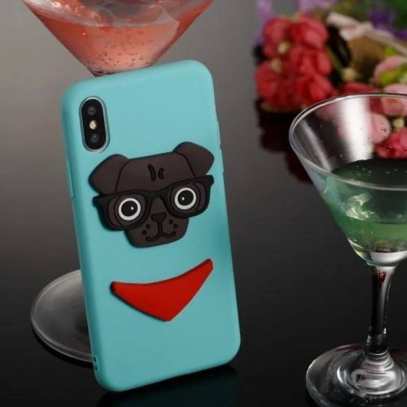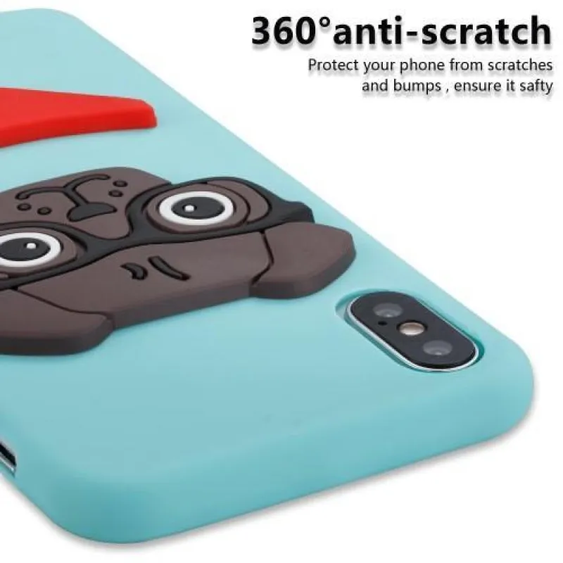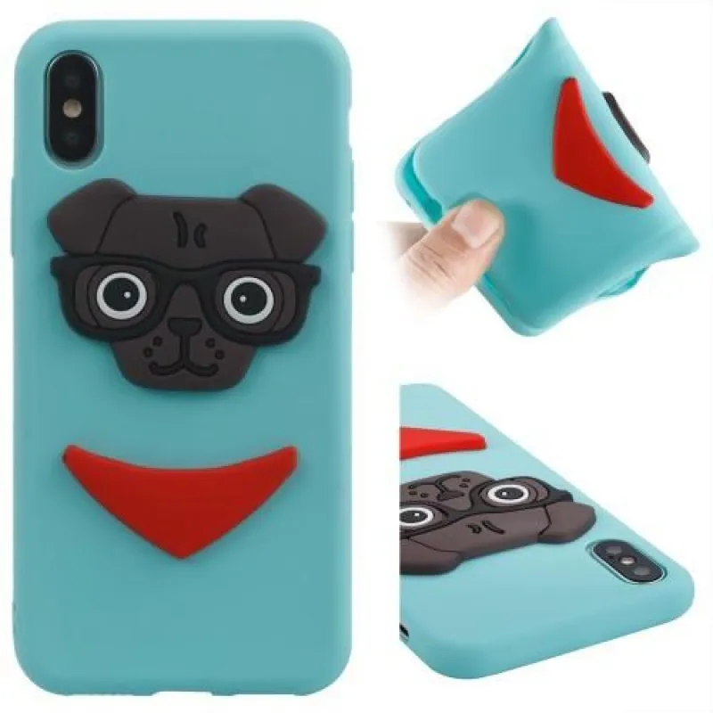 Kutyás 3D szilikon tok iPhone X készülékhez - kék