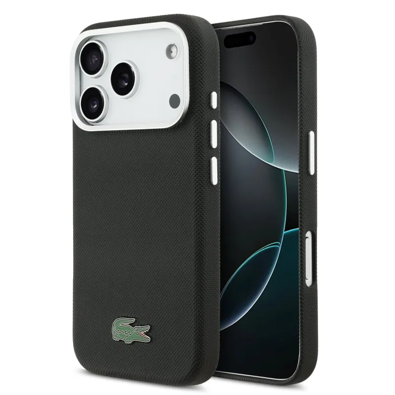 Lacoste Iconic Petit Pique fém logós MagSafe hátlap iPhone 17 Próhoz, fekete