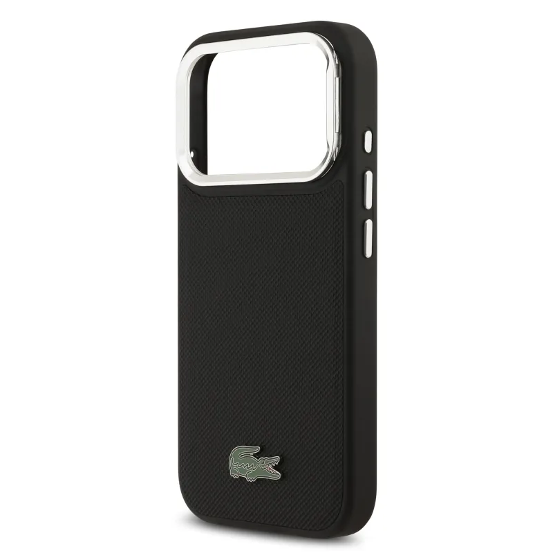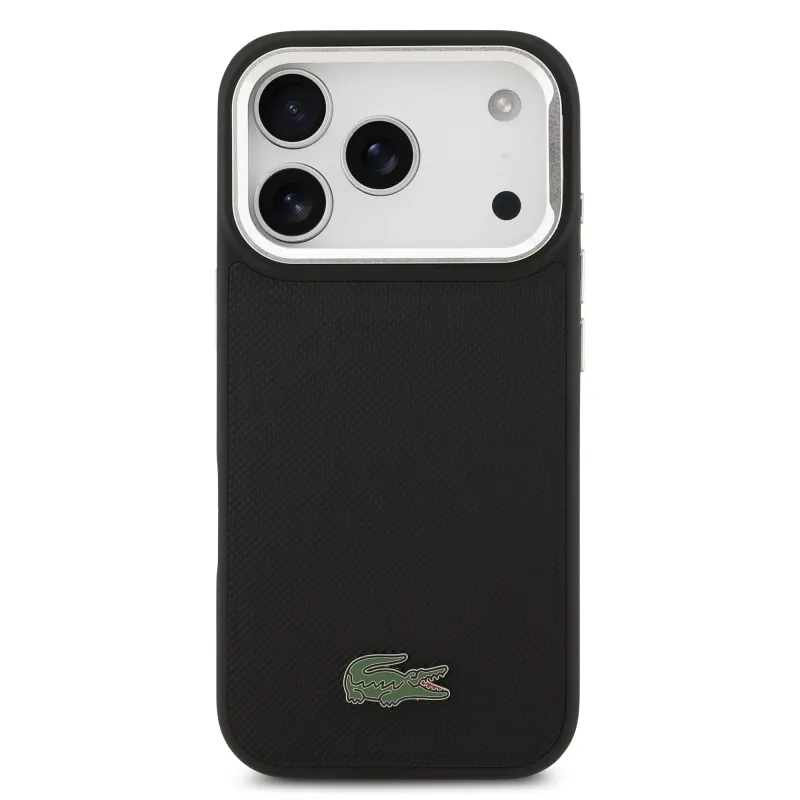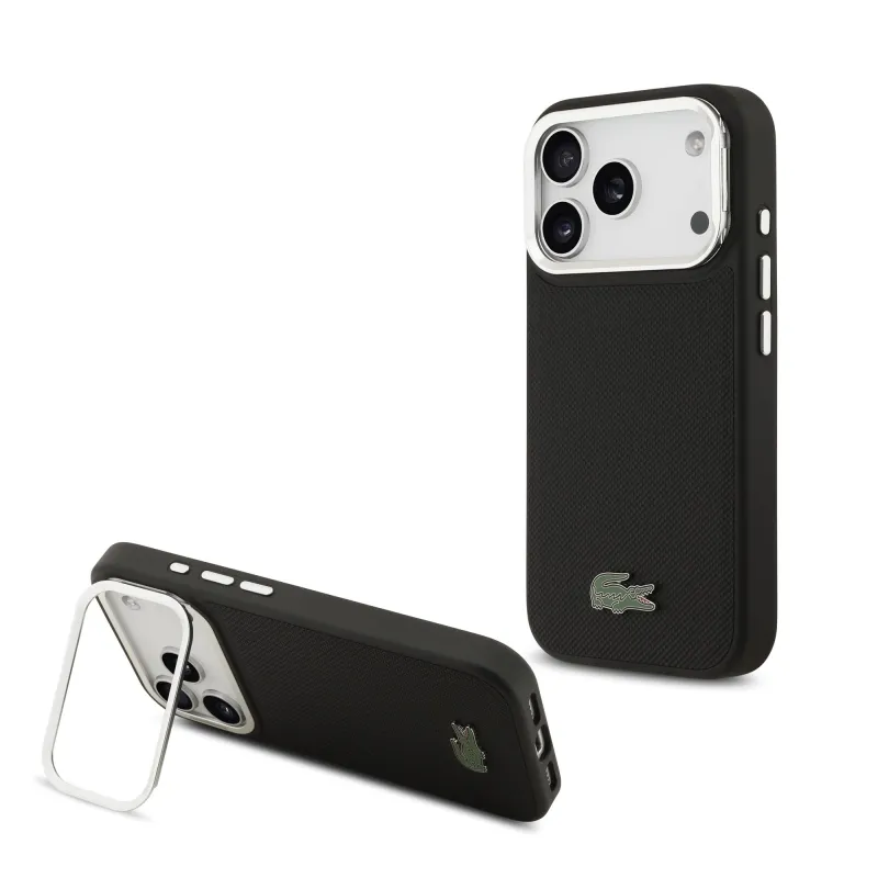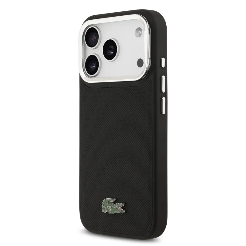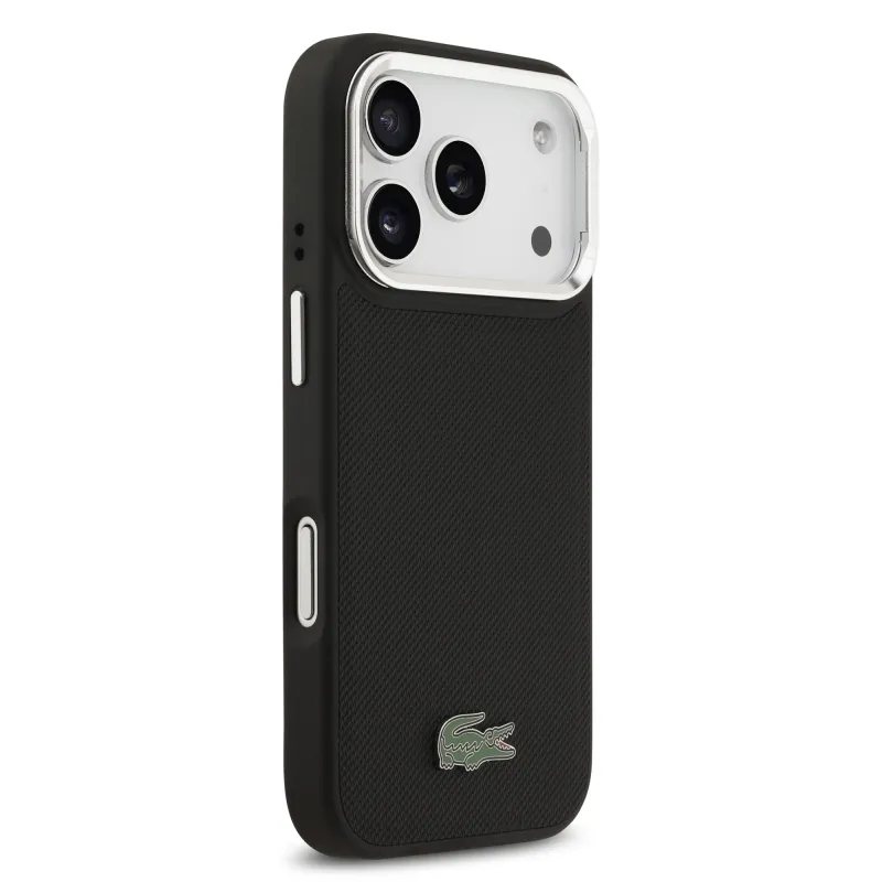 Lacoste Iconic Petit Pique kameraállvány MagSafe hátlapi borító iPhone 17 Pro-hoz Fekete